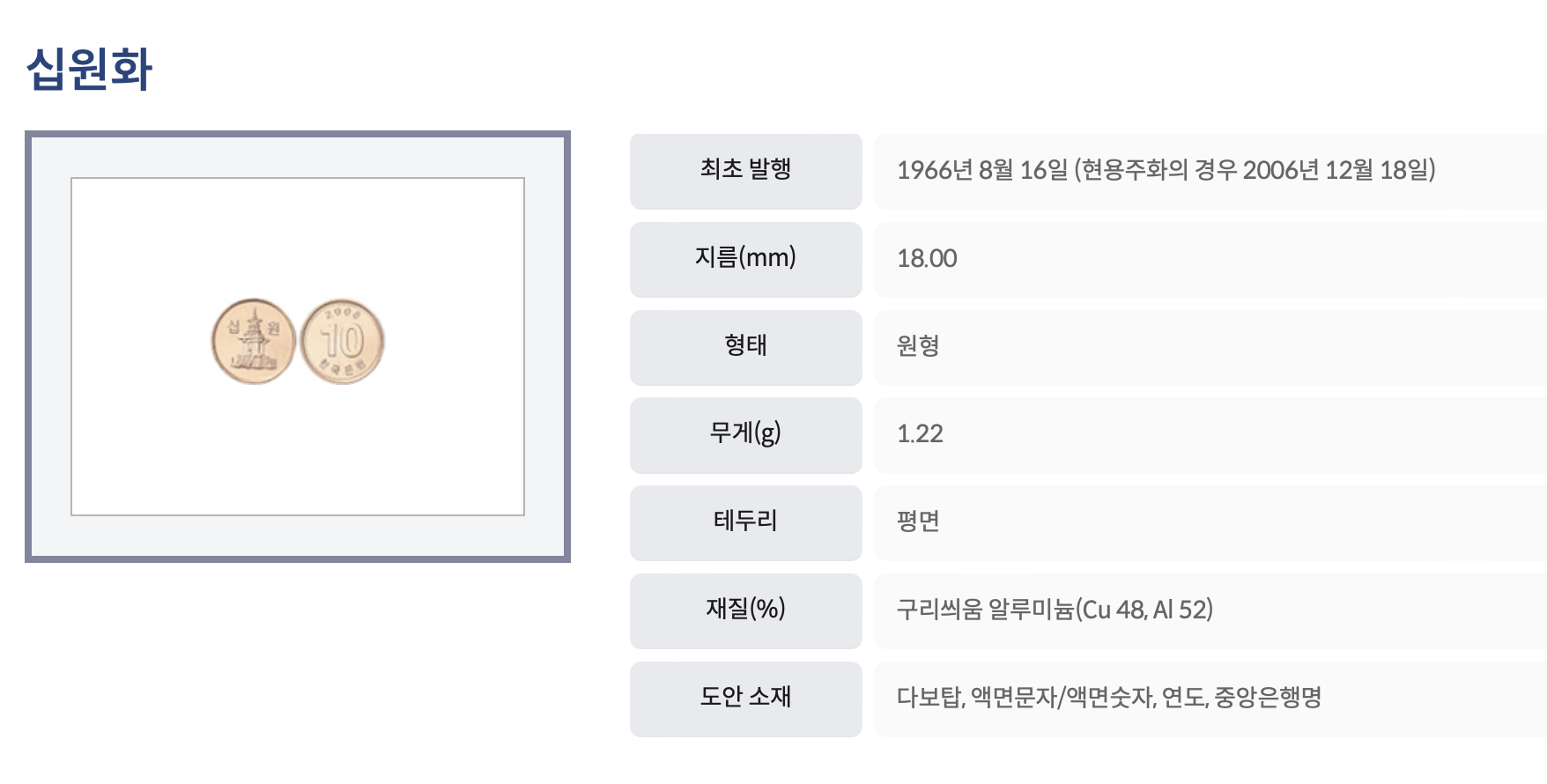 그다음 십원화도 있습니다.