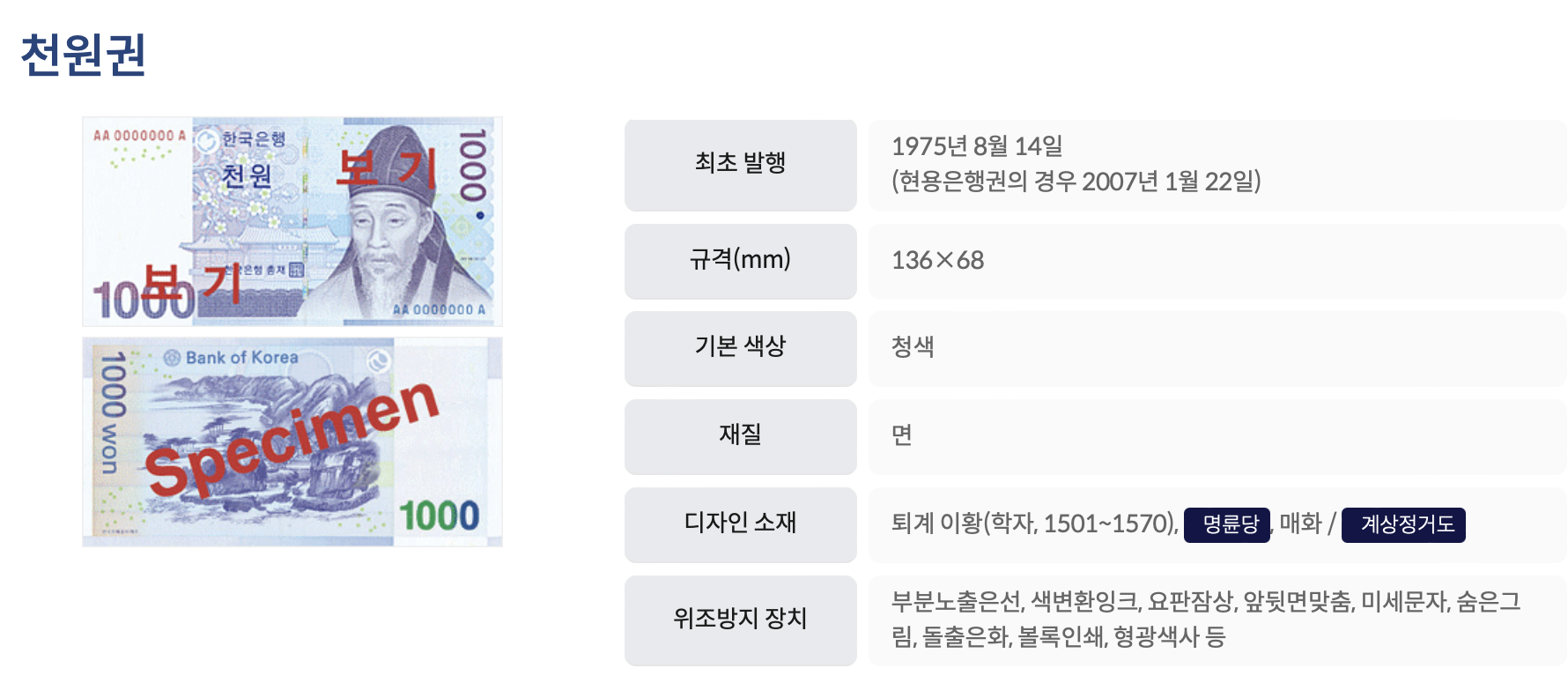 천원권은