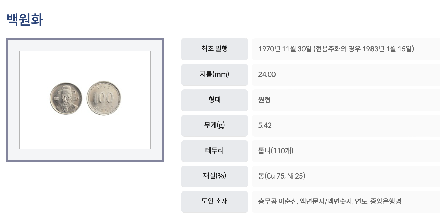 백원 동전보다 또 약 2그램 가볍고요.