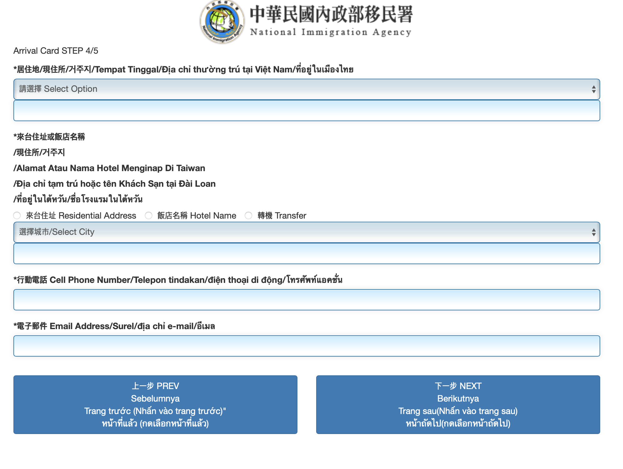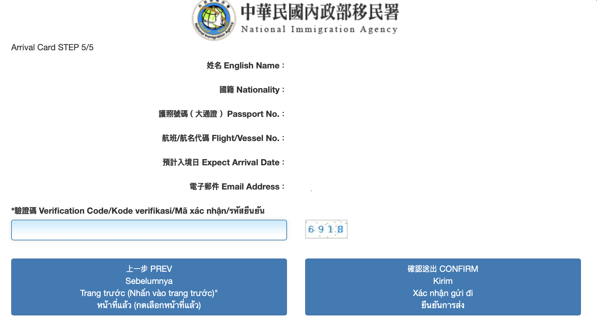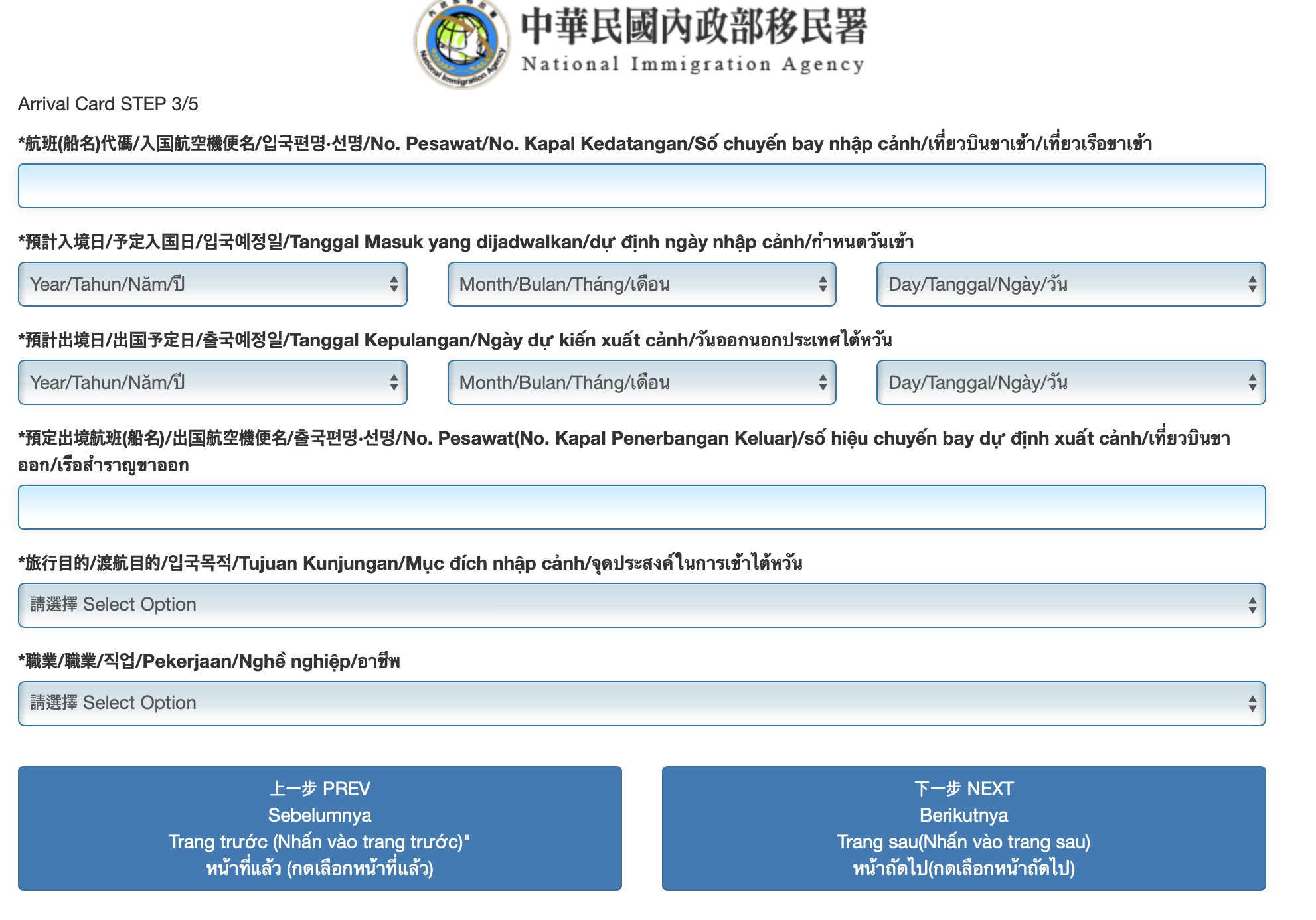 Harus menyelesaikan pengisisan sebelum memasuki Taiwan. Harus disisi dengan lengkap dan benar. Jika ada kesalahan, harus mengisi lagi dengan data yang benar. Kolom nama Inggris, hanya bisa diisi dengan alfabet Inggris dan karakter kosong (spasi). Jika meng