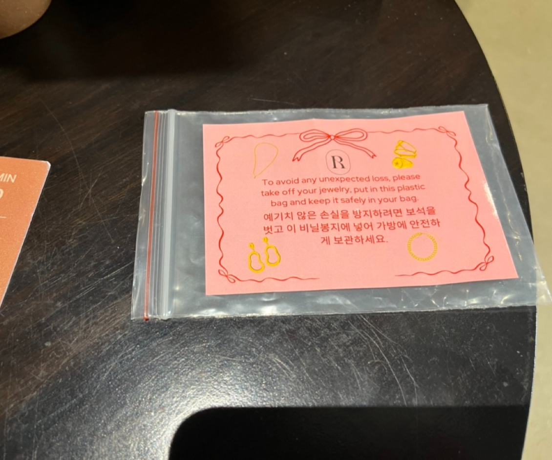 귀중품은 넣을 수 있게 지퍼백을 주십니다.