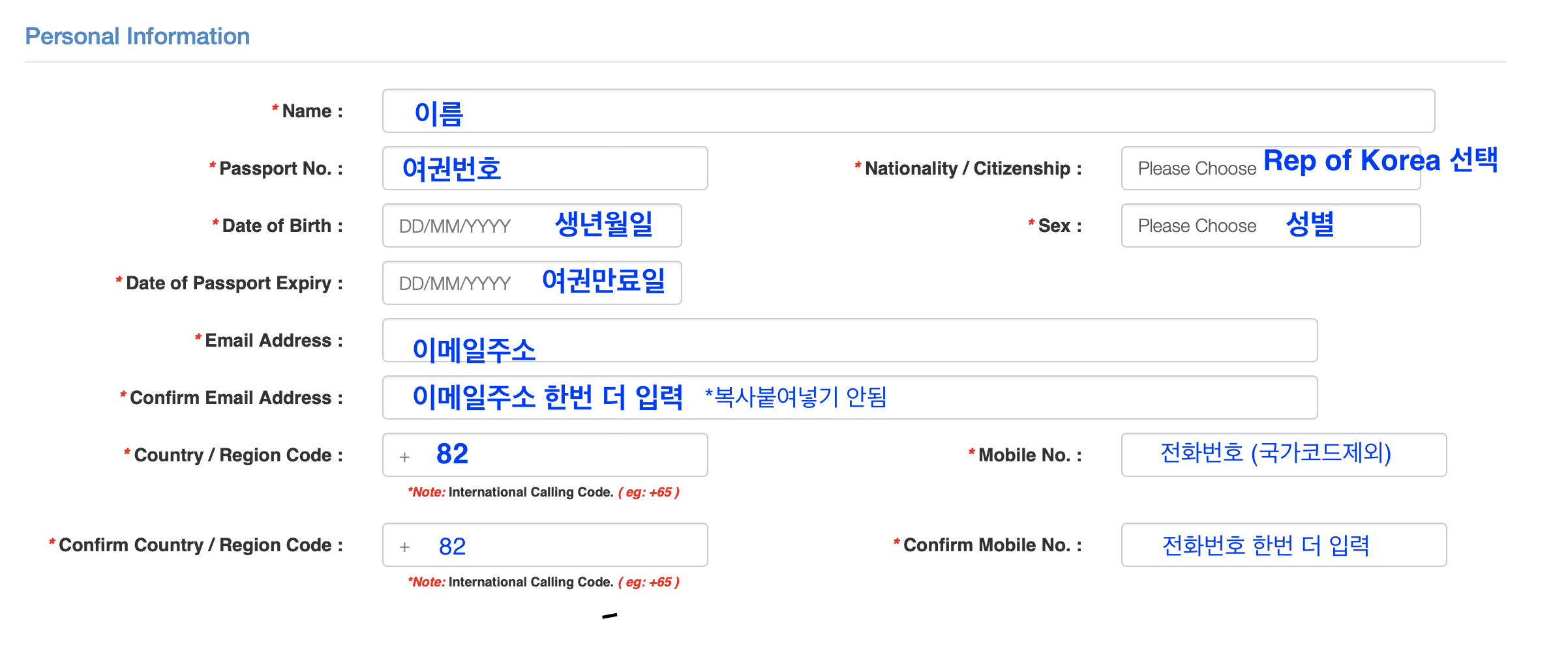 개인정보는 이름과 여권번호