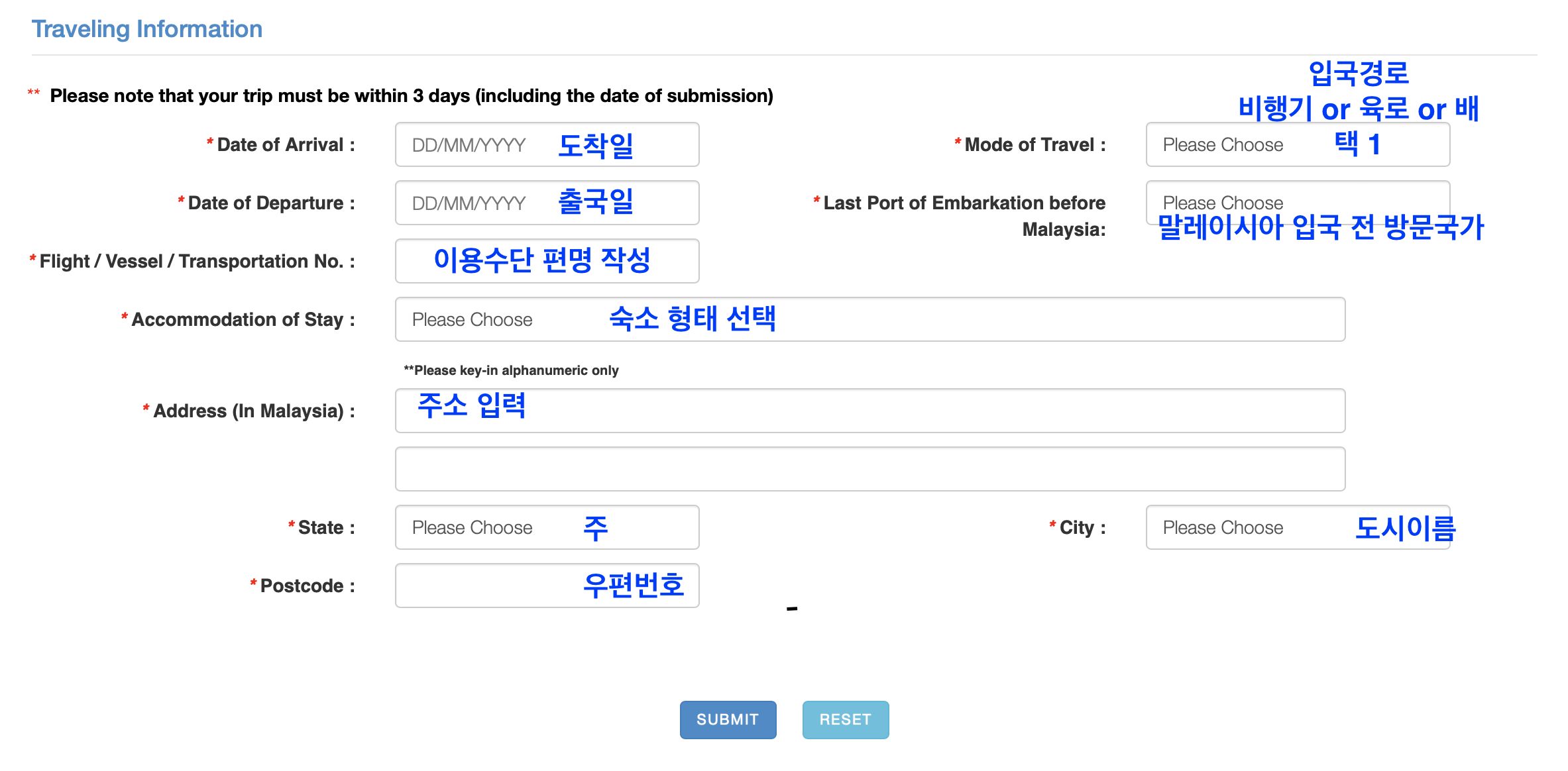 말레이시아 입국시 꼭 필요한 절차이므로