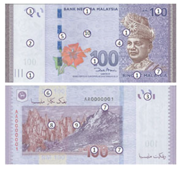 위 사진은 100링깃 지폐인데요.