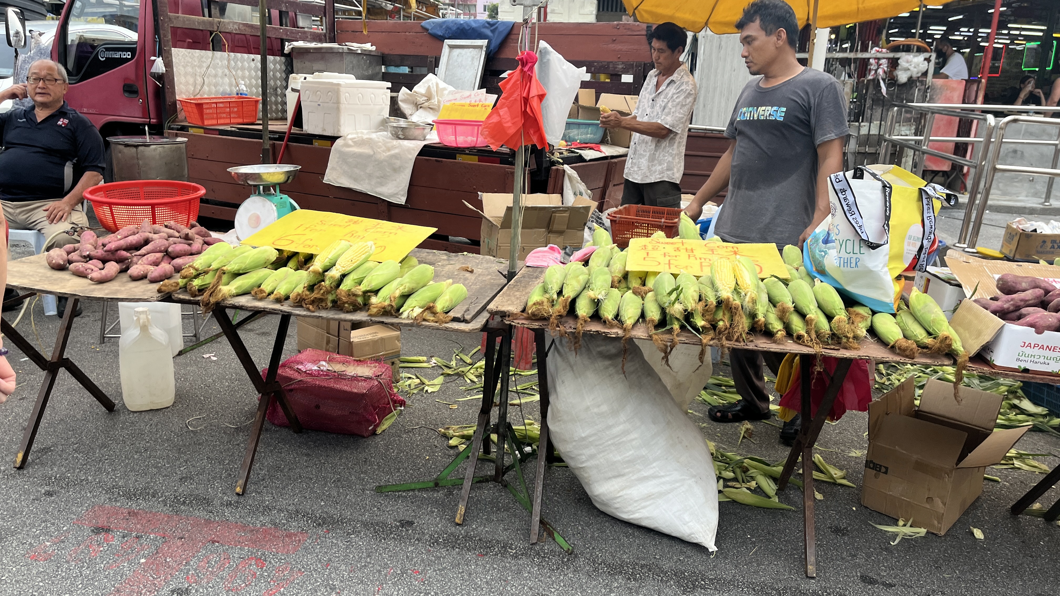 찐 옥수수도 팔고 있어요.