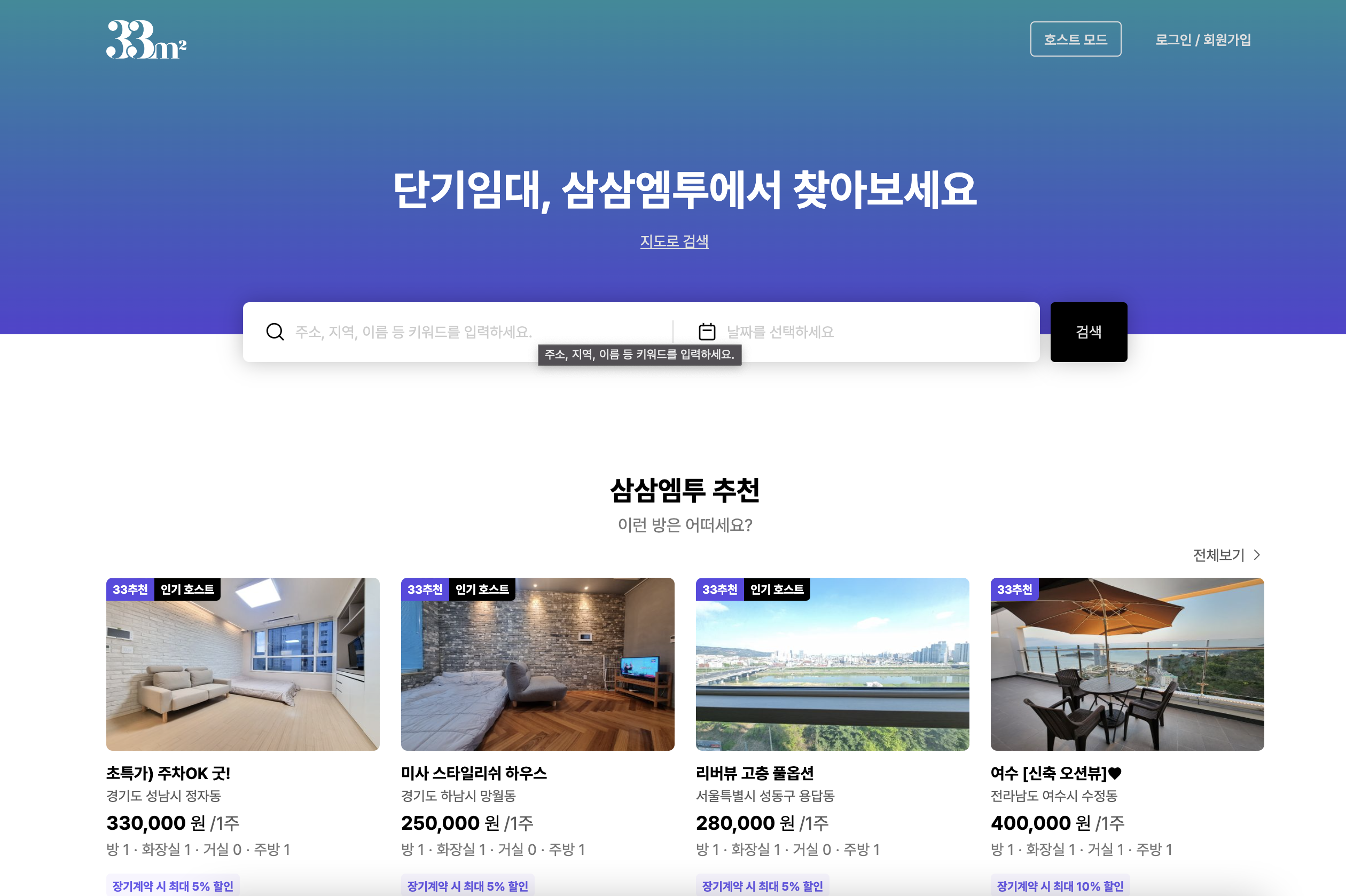 삼삼엠투 - 단기임대, 한달살기 부동산 계약 플랫폼