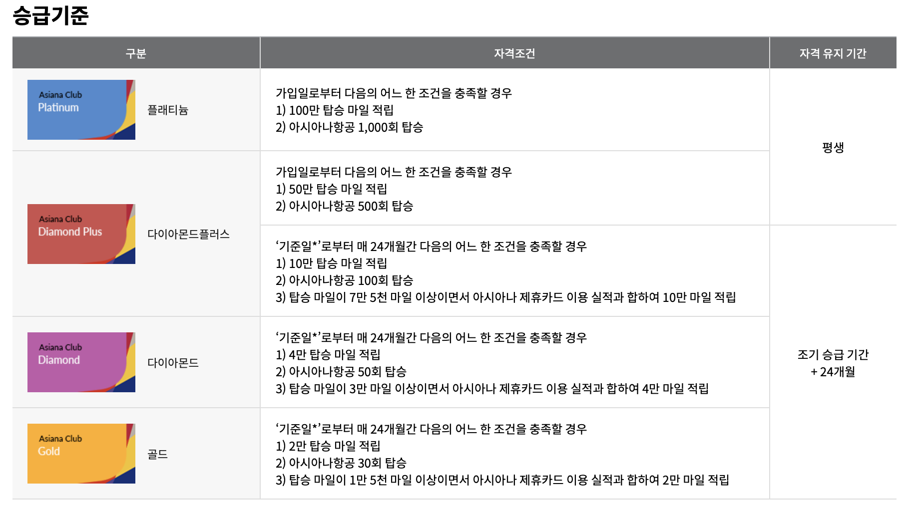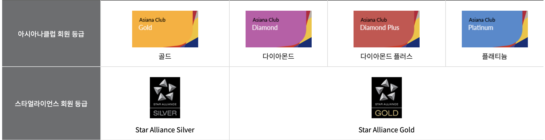 아시아나의 다이아몬드부터 플래티늄 등급에 맞춰