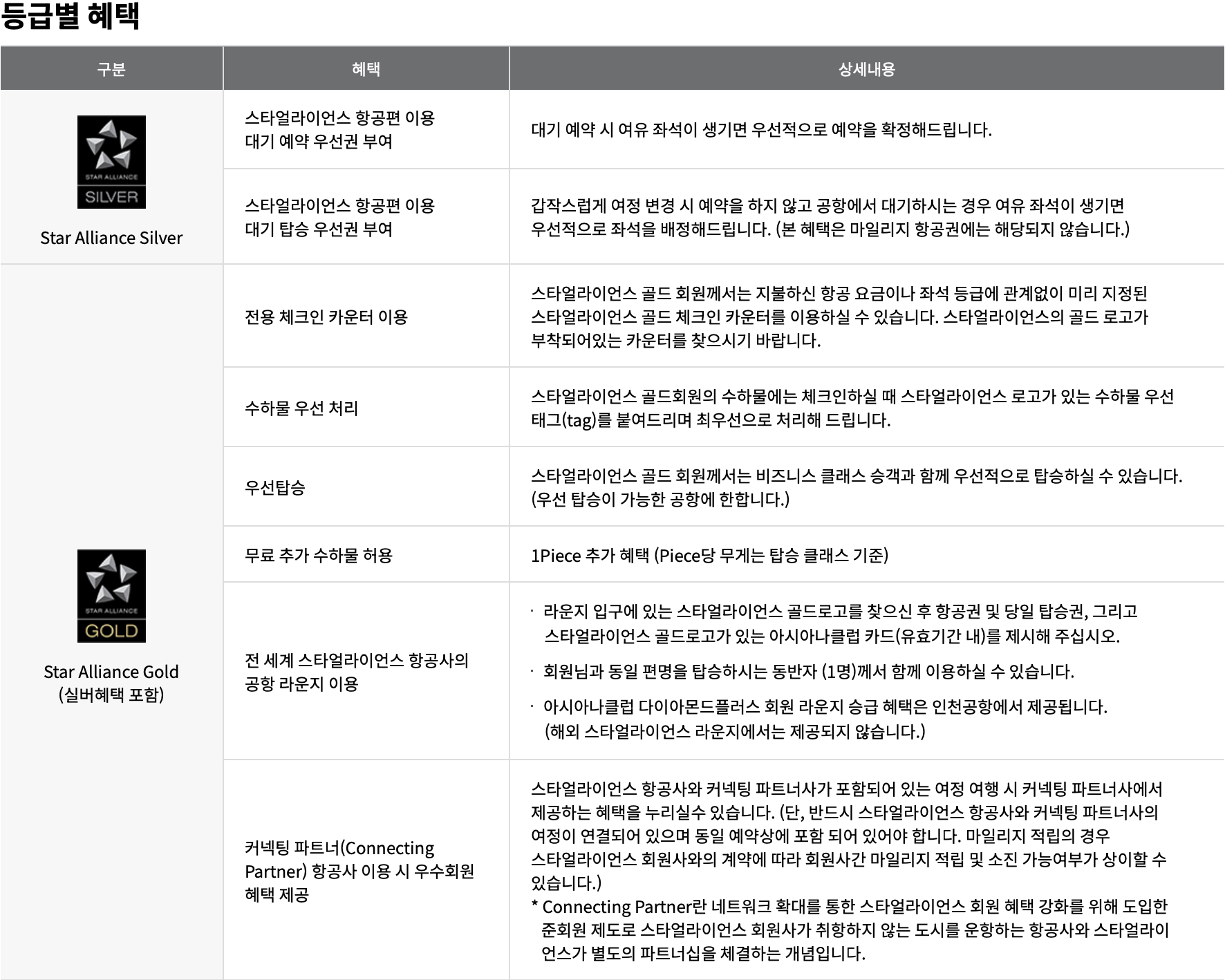 스타얼라이언스 등급별 혜택