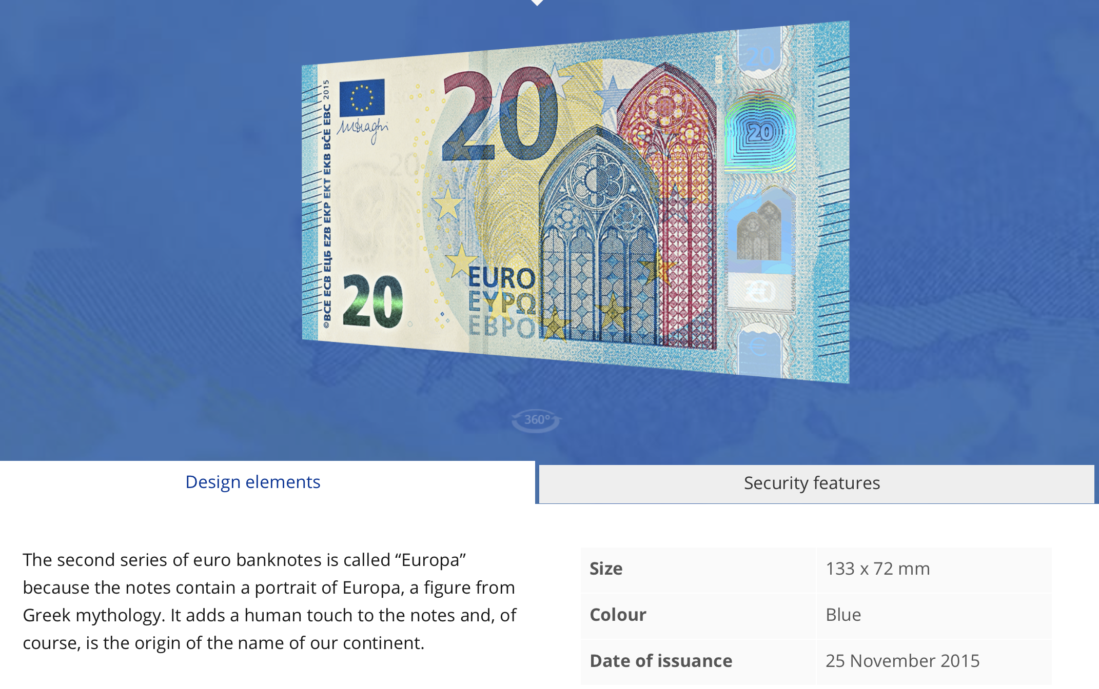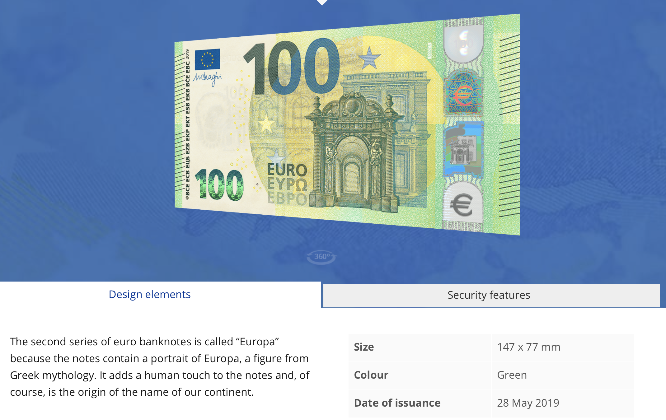 유로지폐를 보면서 설명이 특이한게