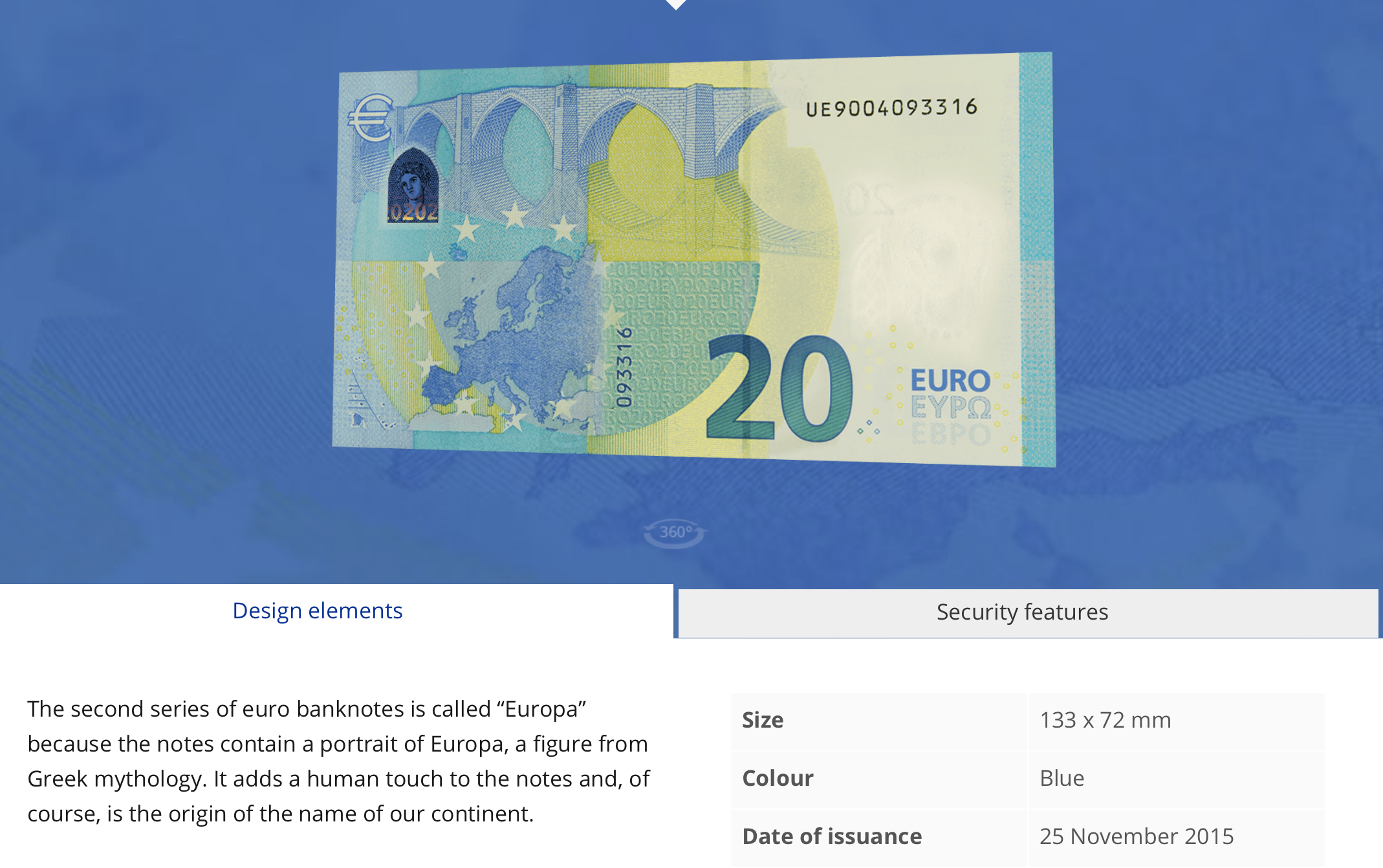 20유로지폐는 파란색이고