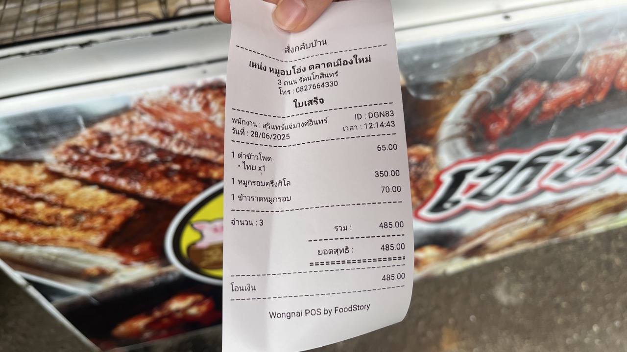 총 485밧으로 한국돈 약 2만원 돈으로