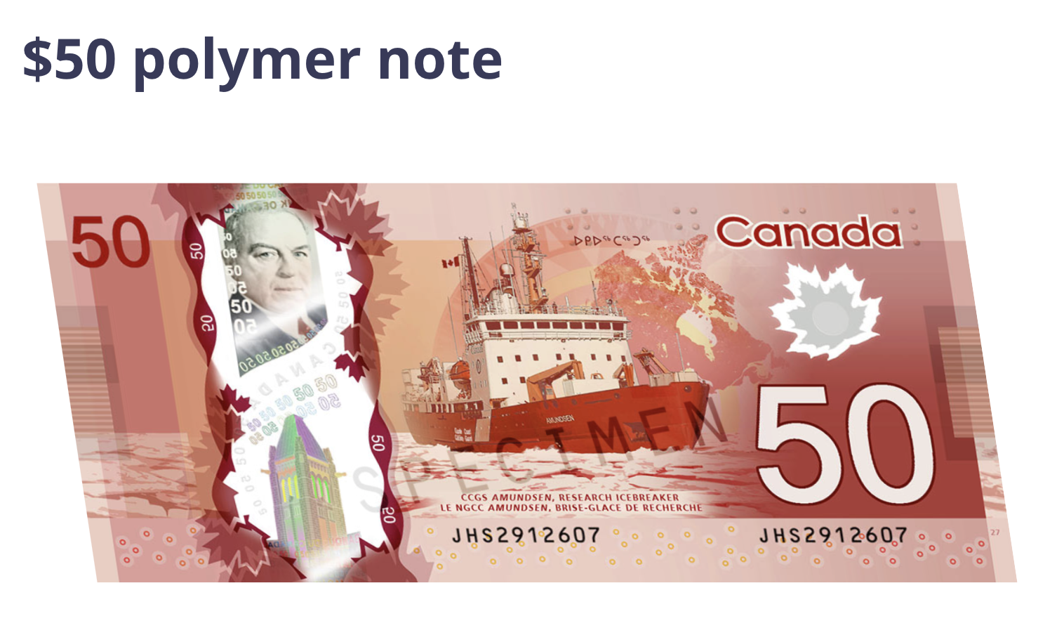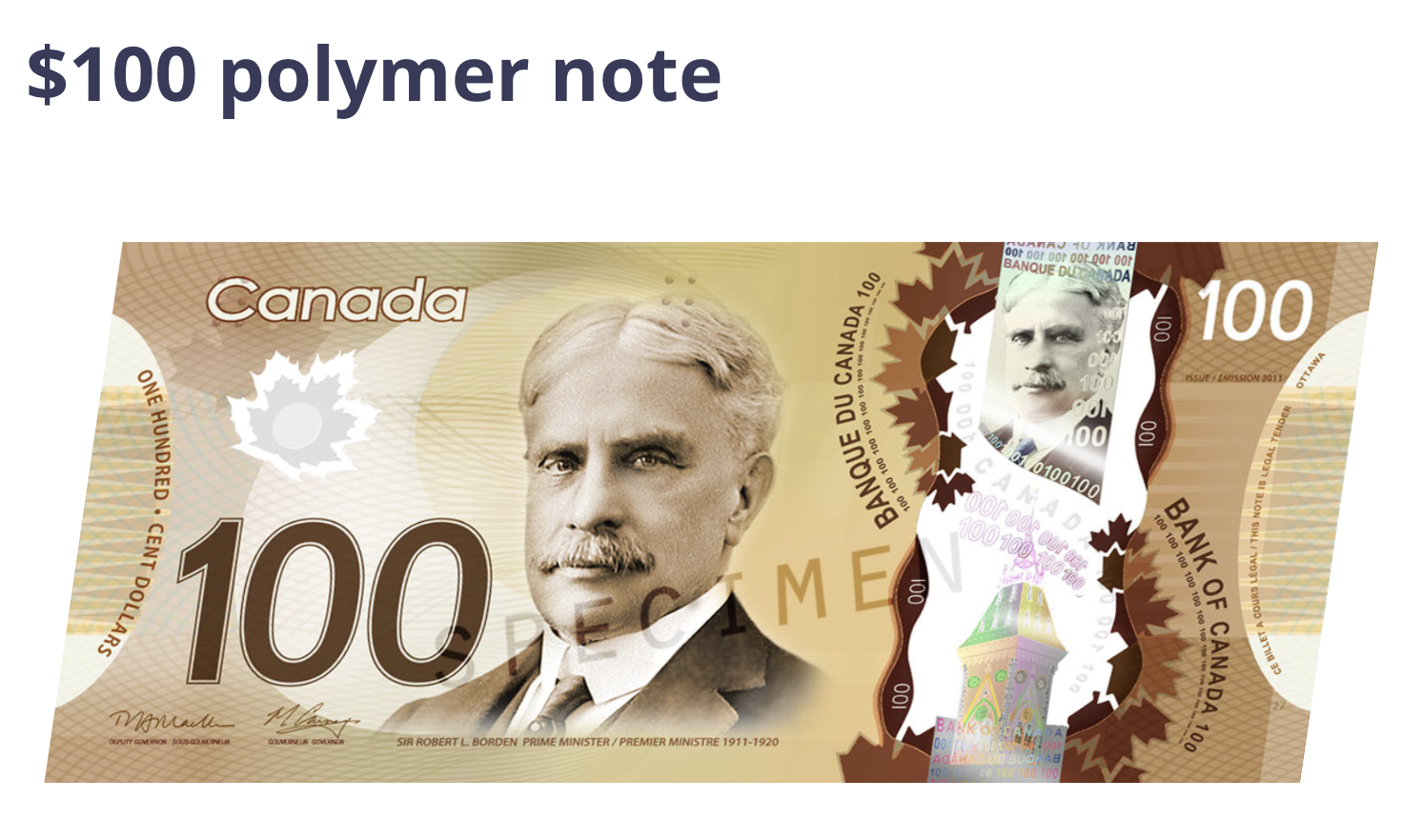 가장 큰 단위인 100캐나다달러에는