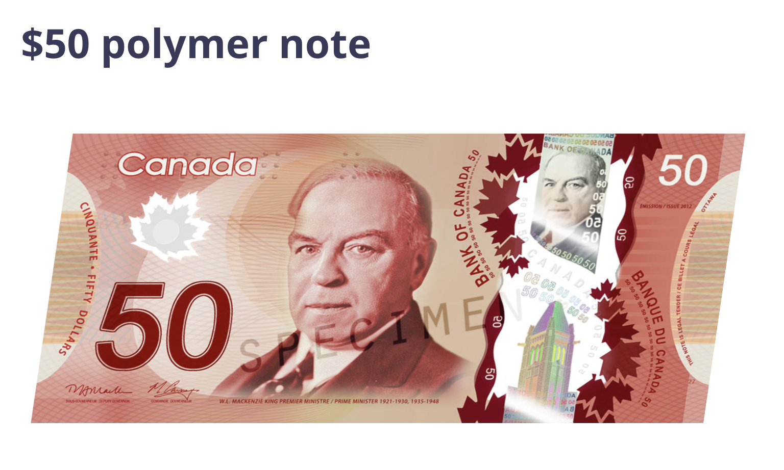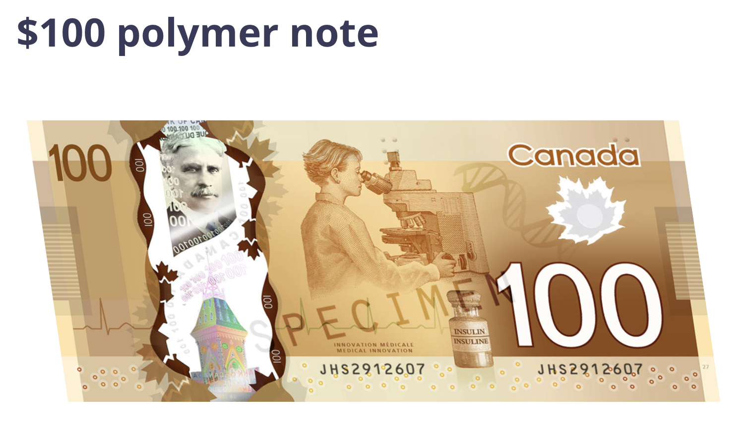 가장 큰 단위인 100캐나다달러에는