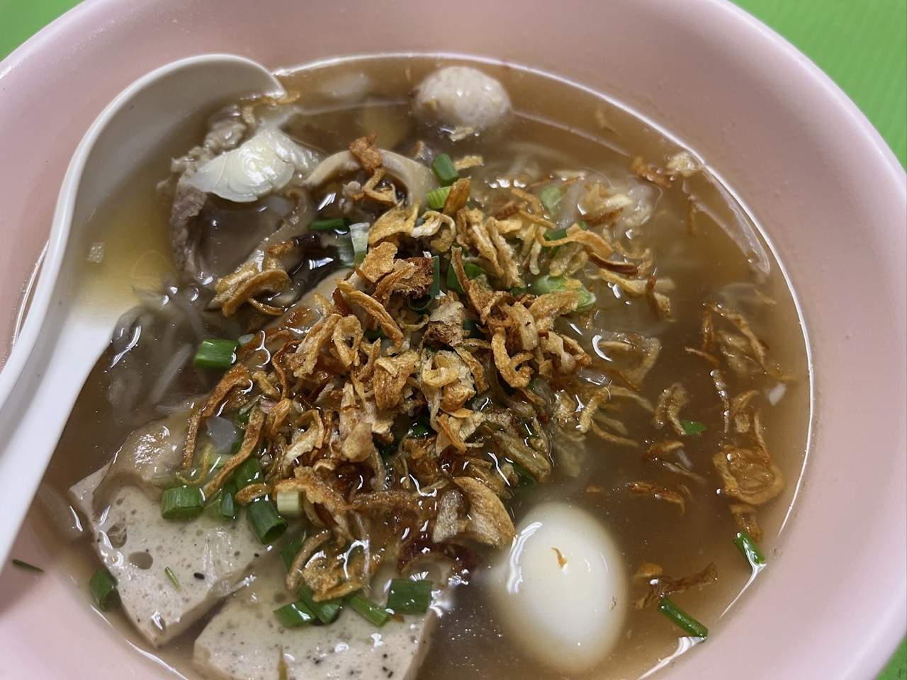 끈적국수에는 후추맛이 잔뜩있는 어묵과 메추리알이