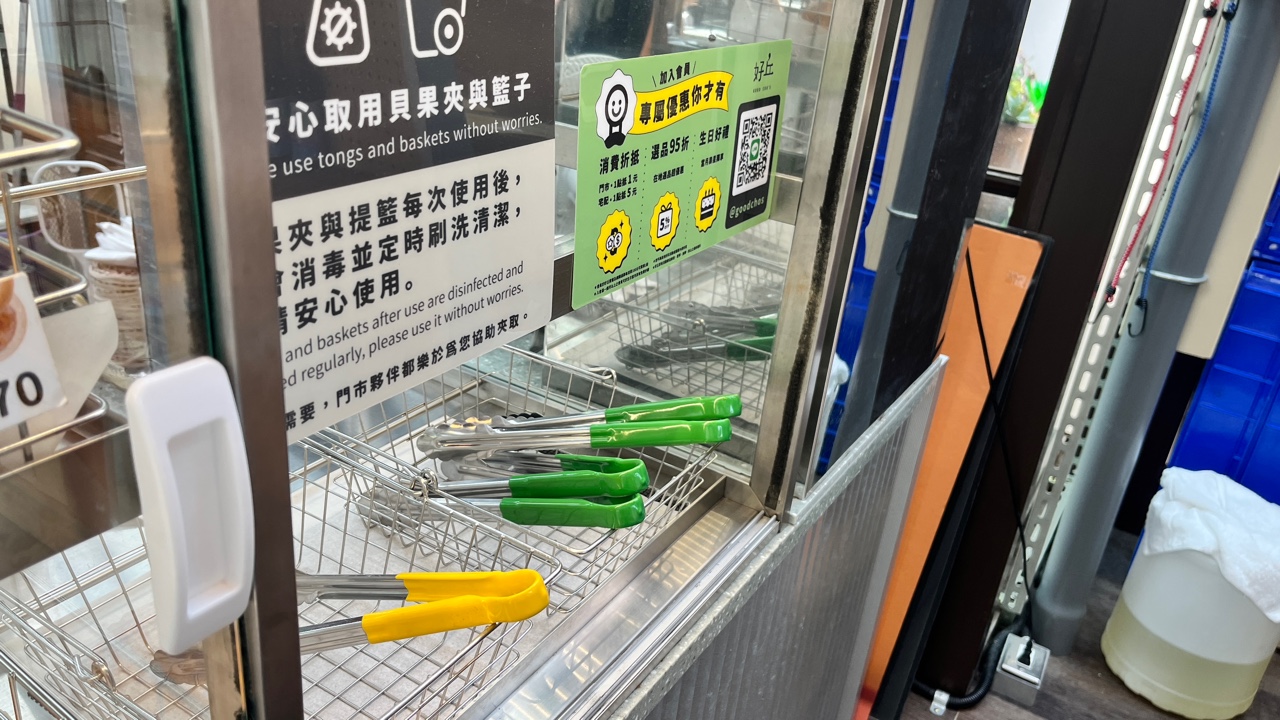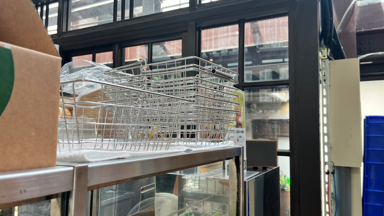 주문은 이렇게 집게와 바구니가 있어요.