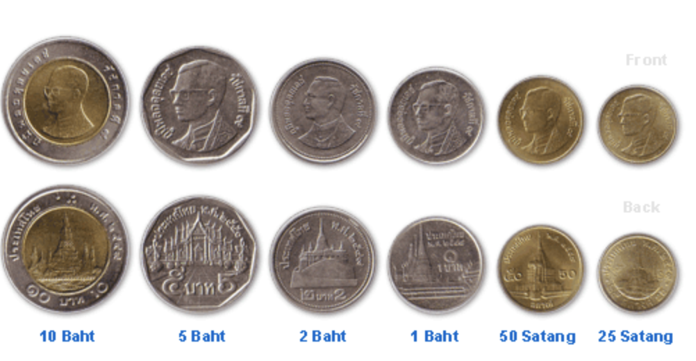 10밧 동전이 가장 높은 단위의 동전입니다.