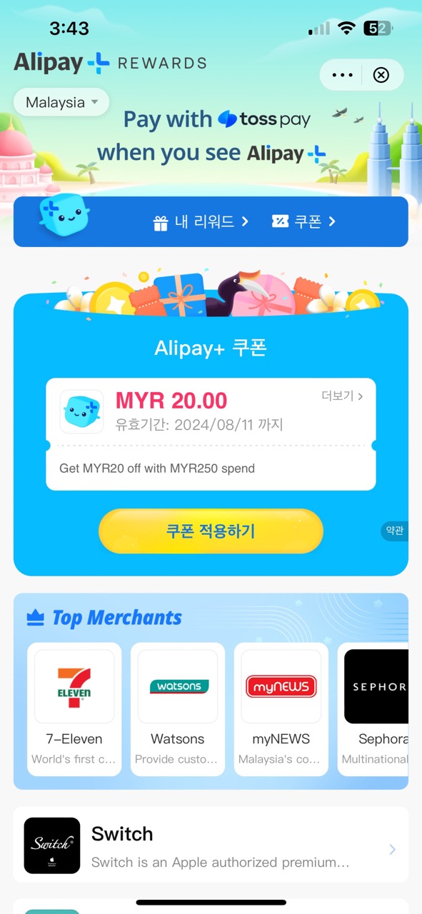 +알리페이에는 250링깃이상 결제 20링깃 할인인데