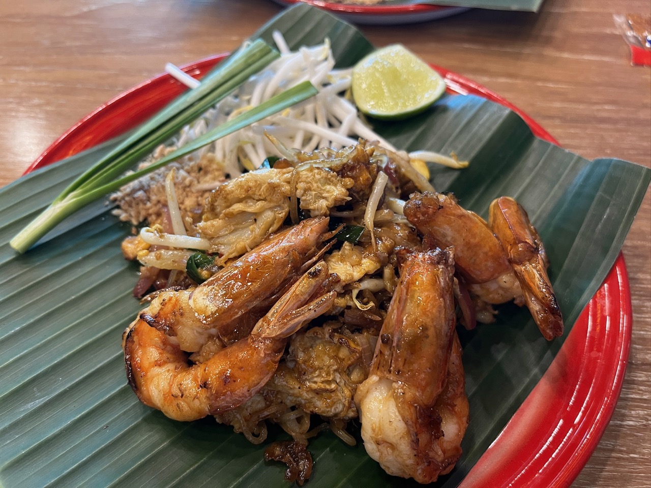 450밧 새우 팟타이를 시켰어요.