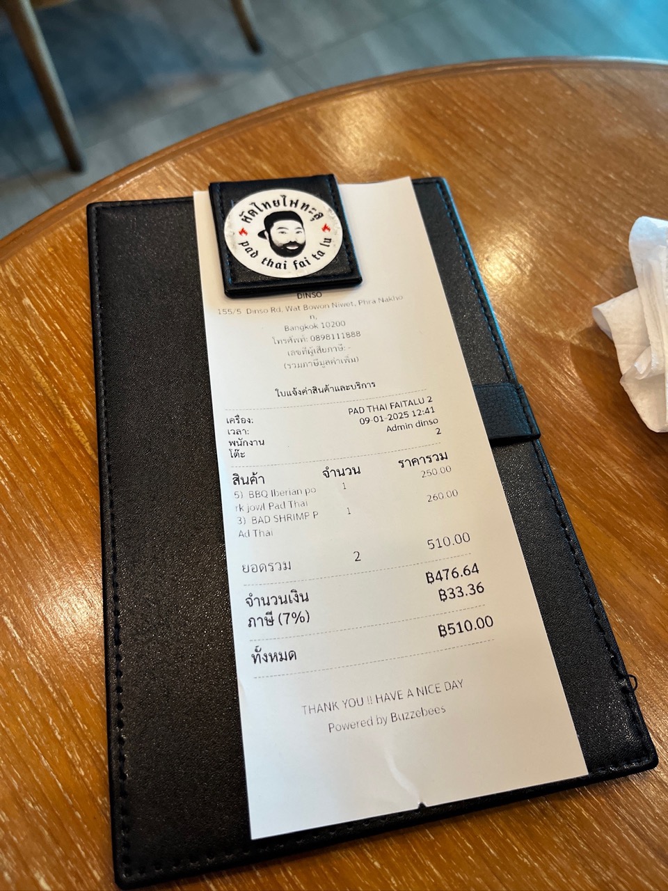 두가지 팟타이 총합이 476밧이고