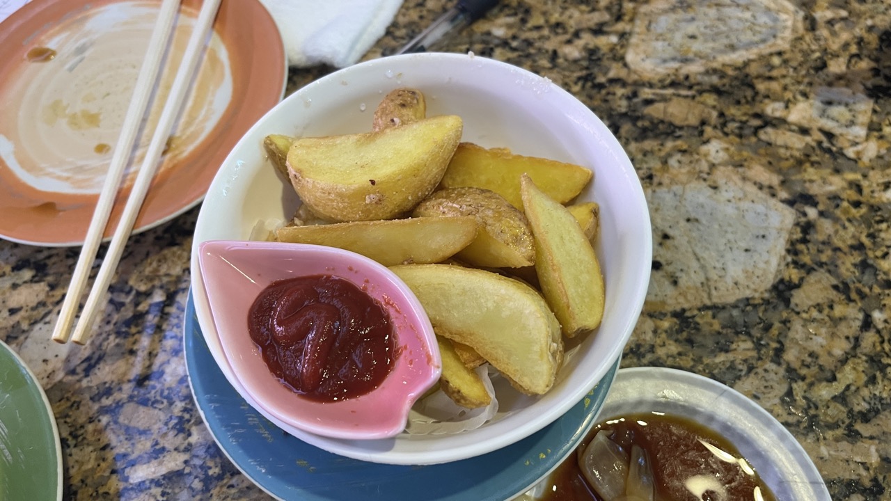 감자도 유명하다고 해서 감자튀김도 하나시키고